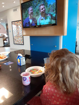 Thankfully, the hotel bed was amazingly comfortable. Aarron wanted to find out what pillows they had and order some. (Have I ever shared that he has a pillow fetish?) The boys woke up bright and early, with surprisingly positive attitudes. Aarron took them downstairs to enjoy the delights of the breakfast bar and then they kindly went and took care of chores at the farm. Adelynn woke up as they were leaving, but it took a while to get Ansley awake. We shuffled downstairs for breakfast, enjoying Wild Kratts on the lobby TV while they ate at a high table. It was a surprisingly good breakfast offering. Probably one of the better hotel breakfast bars I have had. They had the typical stuff, but it was all a little nicer than my other recent mid-range hotel experiences. The cinnamon bun was especially good, and I appreciated that they offered several different kinds of yogurts.